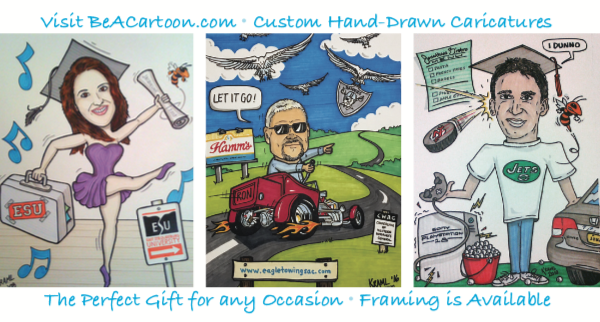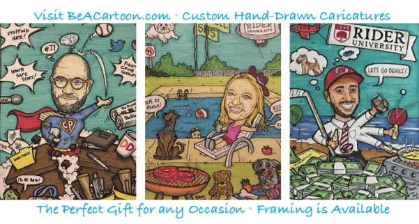 Every custom cartoon begins its journey as a pencil sketch, carefully crafted with your input. Next, it is drawn on illustration board with black permanent marker and then brought to life through the application of vibrant color markers. On average, the entire illustration process takes between 4 to 5 hours to complete. Each piece is truly one of a kind.